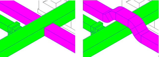| 지정 레벨까지 연장 | 레벨과 간격 띄우기 값을 지정하여 덕트 및 배관을 지정한 높이로 모델링한다. |