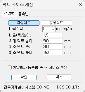 [덕트 사이즈 계산]